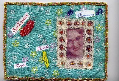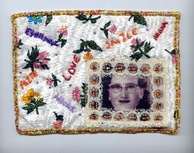 I got Julia Pretl's Little Bead Boxes book and wanted to try one so bad but hubby said I needed to finish what I was doing first so I had no choice but to finish February's page to my Bead Journal. It's called Heart to Heart. I know it looks crooked but that's just the way it is laying in the scanner. I'll use my camera later and get better pictures.
