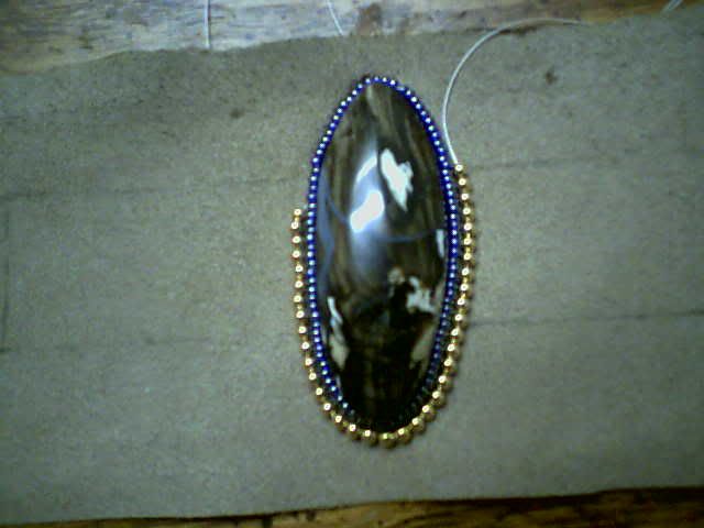 Here is a peak at my latest project. It's going to be a barrette. I don't remember what kind of stone it is. It's some kind of agate.