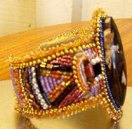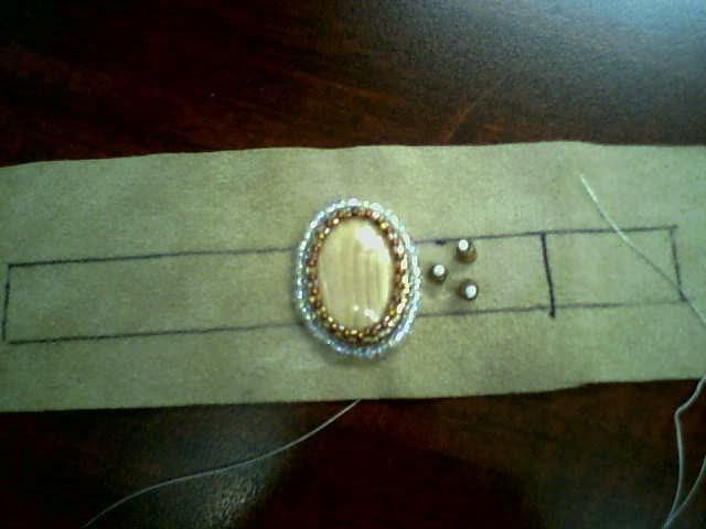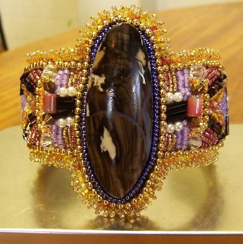 Here is a sample of my next bracelet. The cabochon is Willow Creek Jasper, another one that I got from Curt!