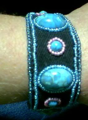 Since I ran out of metal blanks on my last bracelet I decided to do this cuff using black denim. I really love the way it turned out. I didn't want to bead the whole thing because I wanted the denim to show. You can't see the clasp but it's a sterling S clasp.
